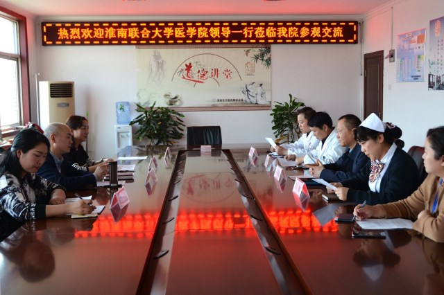 3月28日下午,淮南联合大学副校长倪刘根率医学院院长宋丽华及相关同志前往淮南东方医疗集团东方总院洽谈校企合作方案。总院院长王多维、副院长詹一朝及医务科、护理部的负责同志参加了此次商谈。